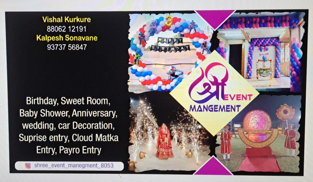 Business name:-Shree Event management Contact details;-vishal kurkure(8806212191) Kalpesh Sonavane (9373756847) Address:-Jalgaon Email I'd:-kalpeshsonavane1096@gmail.com
